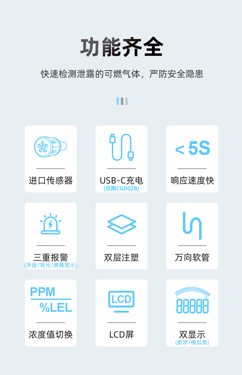 4、测量范围:0~100%LEL / 50~50000ppm(以甲烷为基础)