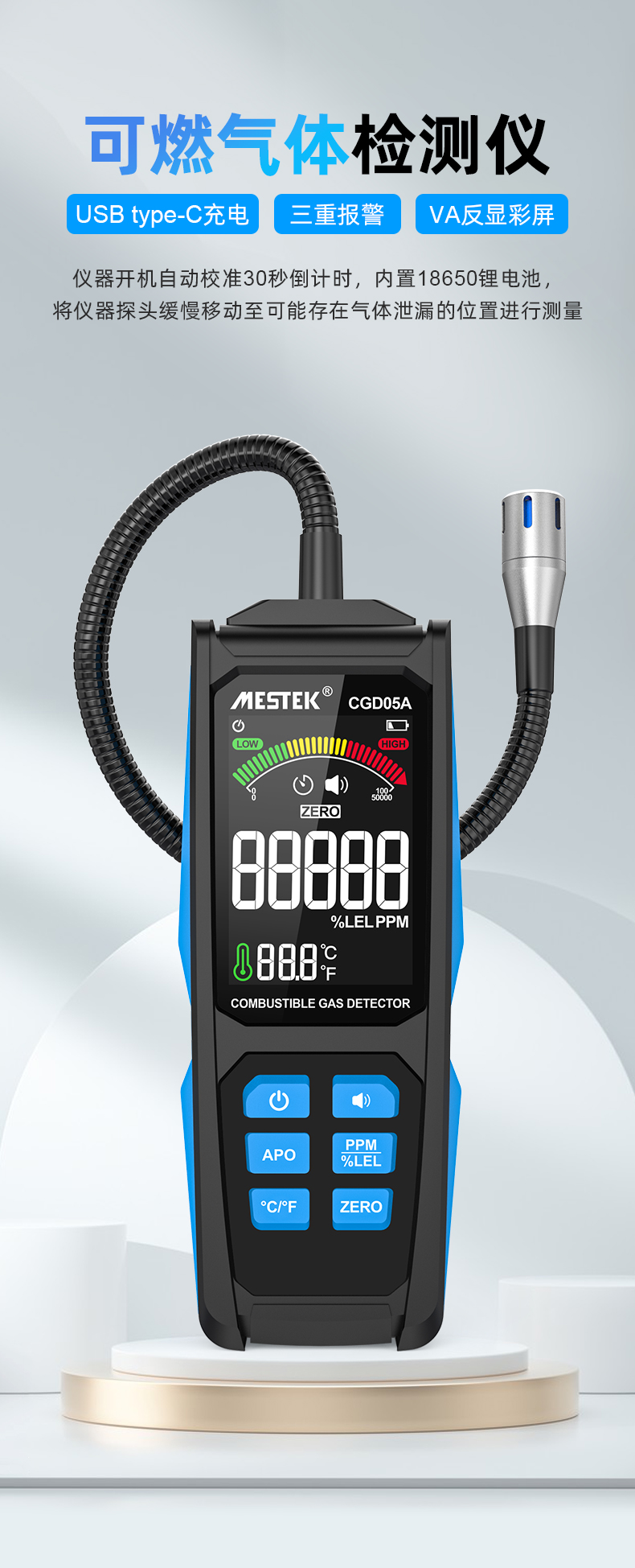 5、测量范围:0~100%LEL / 50~50000ppm(以甲烷为基础)